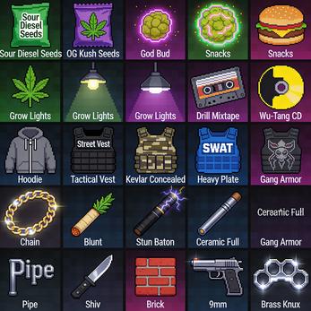 - Quests & Flavor: Fetch hip-hop CDs, fix dry season grows, dodge snitch traps, risky hooker info trades—all feed REP/Heat/Cash economy.